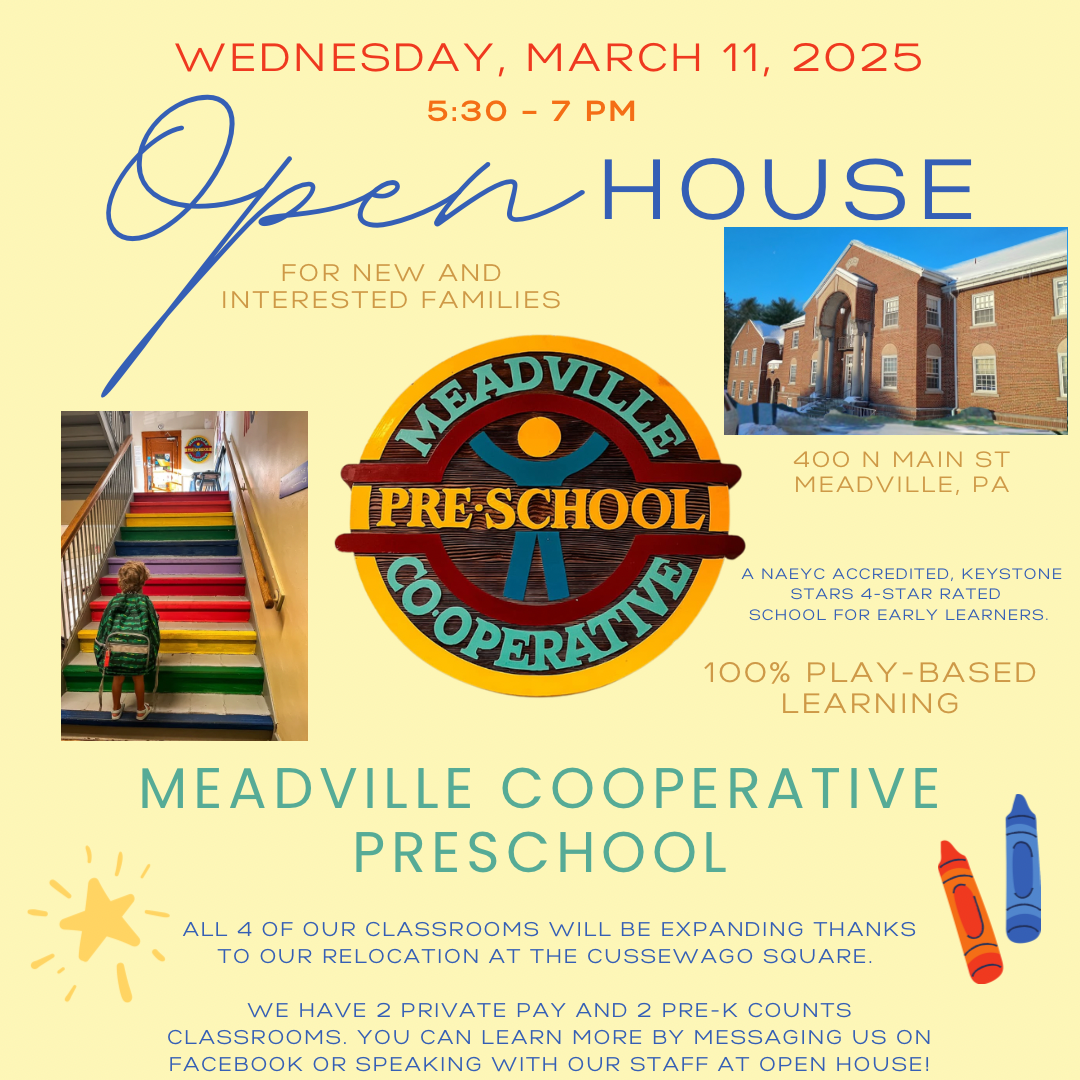 We’d love to welcome you to Meadville Cooperative Preschool for our upcoming Open House!